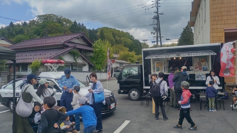 また、キーホルダー作り以外にも、この日はパトカーのふれあい体験がありました。子どもたちは運転席に乗せてもらって、パトランプを動かしてもらうなどで喜んでいました!