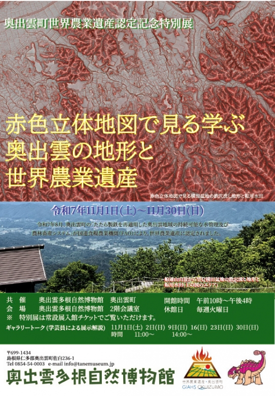 【イベント案内】 特別展「赤色立体地図で見る学ぶ奥出雲の地形と世界農業遺産」