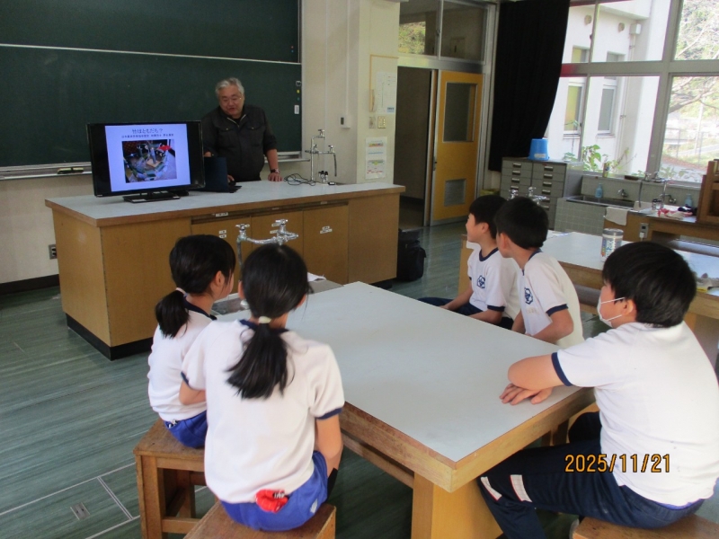 11月21日(金)、雲南市立田井小学校にて『みーもスクール』が行われました。みーもスクールは、森林保全活動の大切さを知ってもらう目的で行われています。その手段として今回は“バウムクーヘン作り”体験と“竹の話”という講義からなる授業を、3・4年生を対象に行いました。
