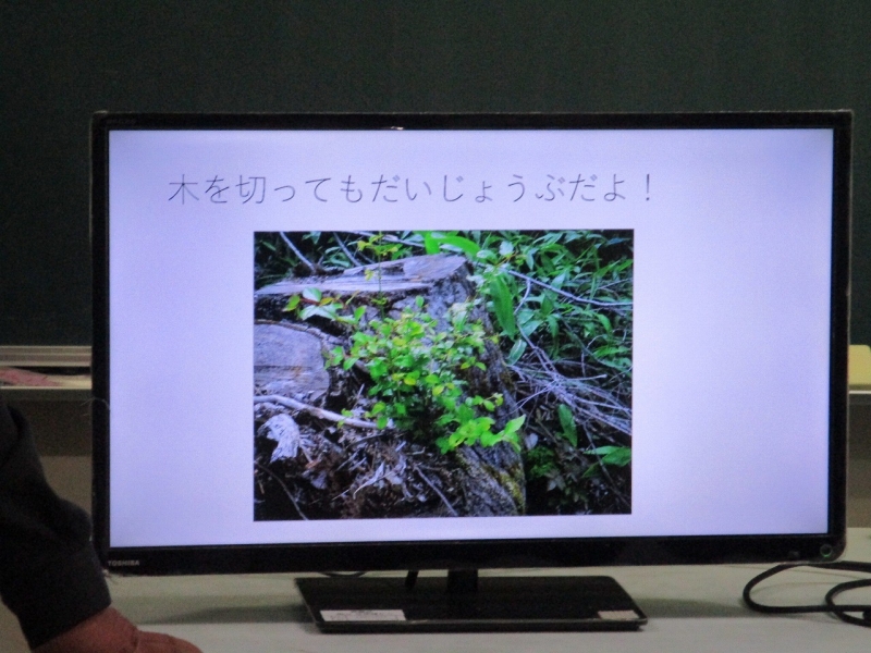 講義の中で子どもたちが驚いていたのは、「木を切って薪にしていったら、どんどん森林が少なくなってしまうのではないか?そのために人はどうしていたのか?」という質問を先生からされたときです。多くの子どもはまた植樹をしていたと考えました。しかし、先生から「木を切った後、新しい芽が生えてやがて成長していく」と教えてもらったときには子どもたちはとても驚いていました。