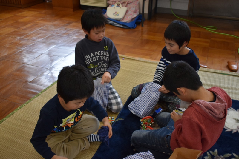 こども達は大喜びでプレゼントを受け取り、早速中身を開ける子供たちは目が輝いていました♪
