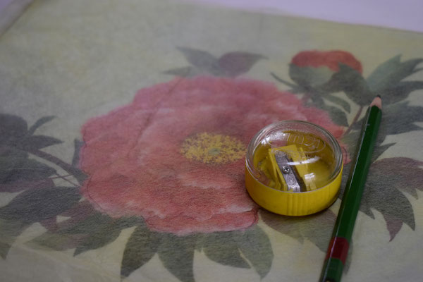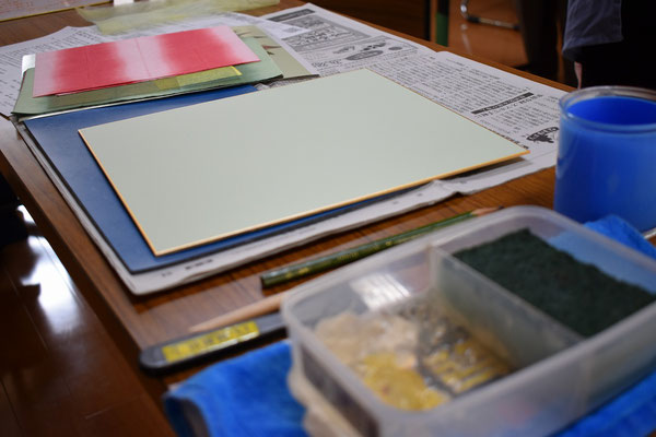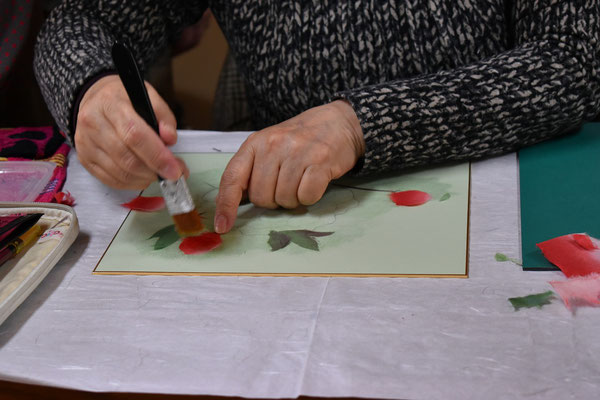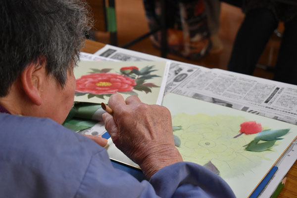 昭和から行なわれ、約30年続いているちぎり絵教室。
