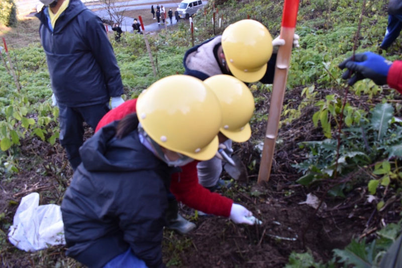 参加者はスコップを使って土をかけ、終始和やかな雰囲気で植樹を楽しんでいましたよ。