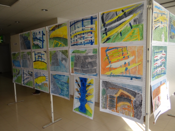 尾原ダム周辺の小学生が描いた尾原ダム/さくらおろち湖の写真も展示