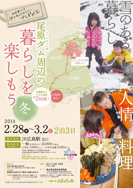 NPO法人さくらおろちでは、Iターン支援事業『尾原ダム周辺の暮らしを楽しもう』の参加申し込みを絶賛受付中です! 対象は県外在住で尾原ダム周辺地域への移住に関心がある方、故郷を離れて生活しておられUターンを考えておられる方です!