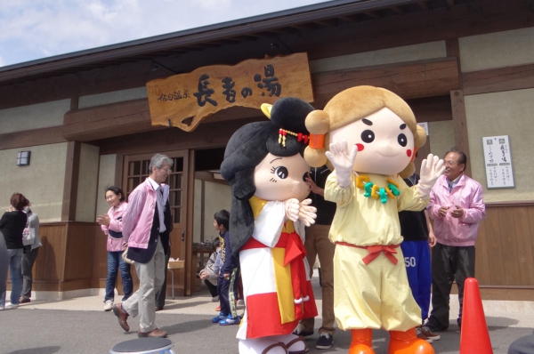 さくらおろち湖の交流拠点として、また健康長寿の地域づくりの施設として2周年を迎えた佐白温泉長者の湯の記念イベントがありました。奥出雲町公認キャラ、スサノオ君に稲田姫ちゃんも駆けつけて、仁多中学校ブラスバンド部演奏や、温泉学会副会長の大川哲次氏の講演などで盛り上がりました。