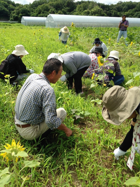 尾原ダム建設残土処理場の跡地であり、畑としてはまだまだ完成途上ということで、「草とのたたかい」が続けられているその有り様を夏の太陽の下、実感しました。