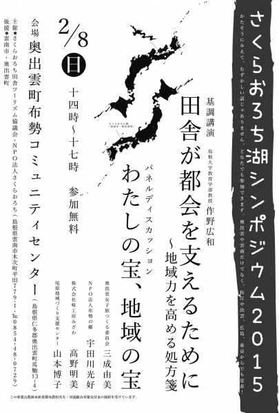 来る2月8日(日)、奥出雲町の布勢コミュニティセンターで、さくらおろち湖シンポジウムを開催します。