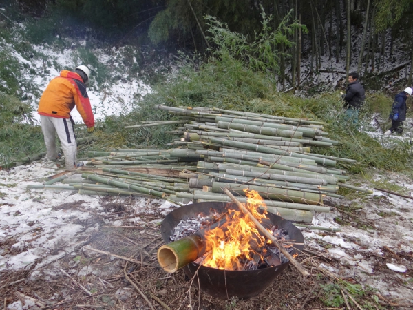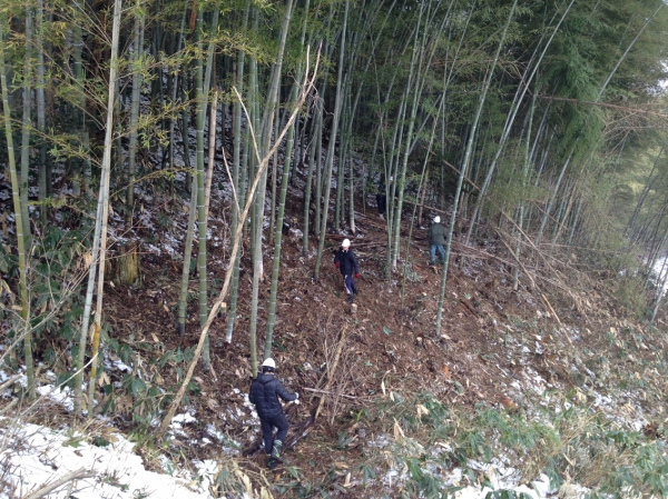 虫たちが活動をはじめる前に、竹薮の中に「道」を開いておくことをやるかと。