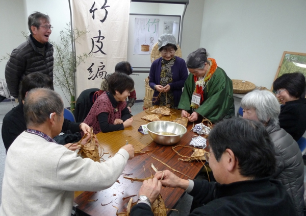 ▲前島美江さんによる竹皮編みのワークショップは大好評