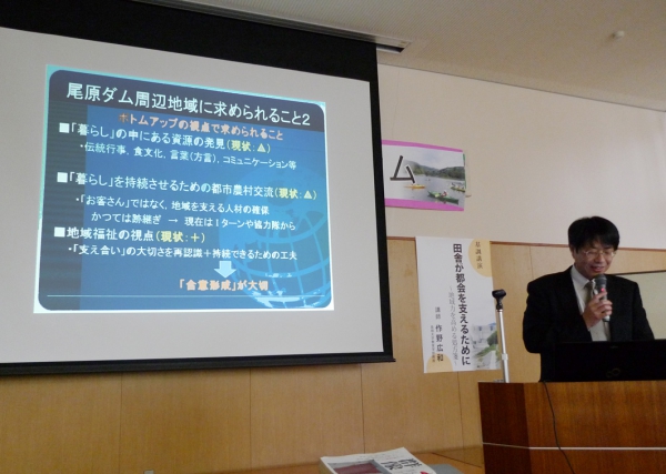 島根大学教育学部作野広和教授の基調講演では、昨今の「市町村消滅論」に対して多数の問題点があげられました。