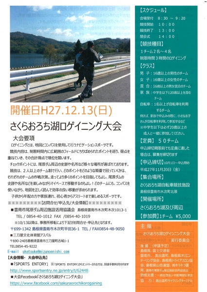 主催:さくらおろち湖ロゲイニング大会実行委員会(三刀屋体育館アスパル)℡0854-45-9222