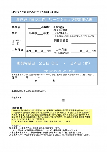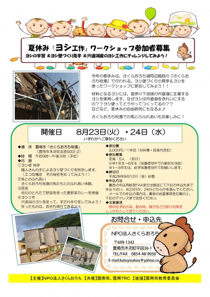夏休み「ヨシ工作」ワークショップ参加募集!