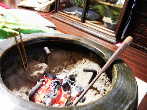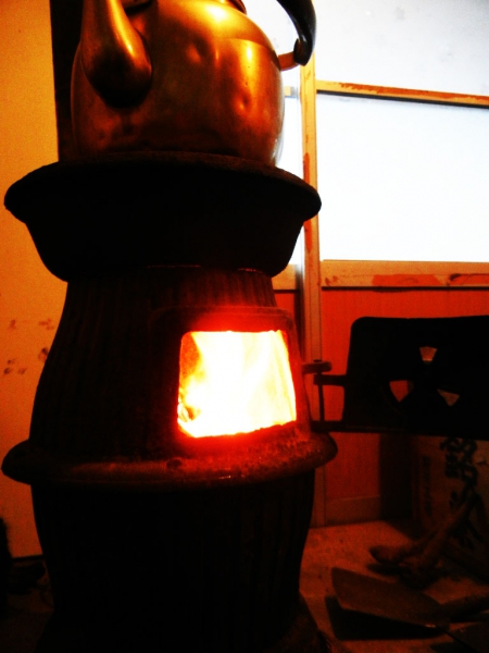 尚、そとは寒かったのですが、骨董カフェこめやの昔ながらの冬道具たちが、